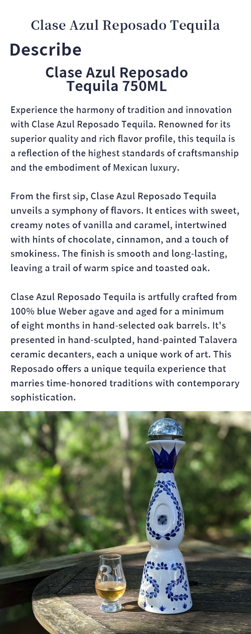 Clase Azul Reposado Tequila 750ml (80 Proof/40%)